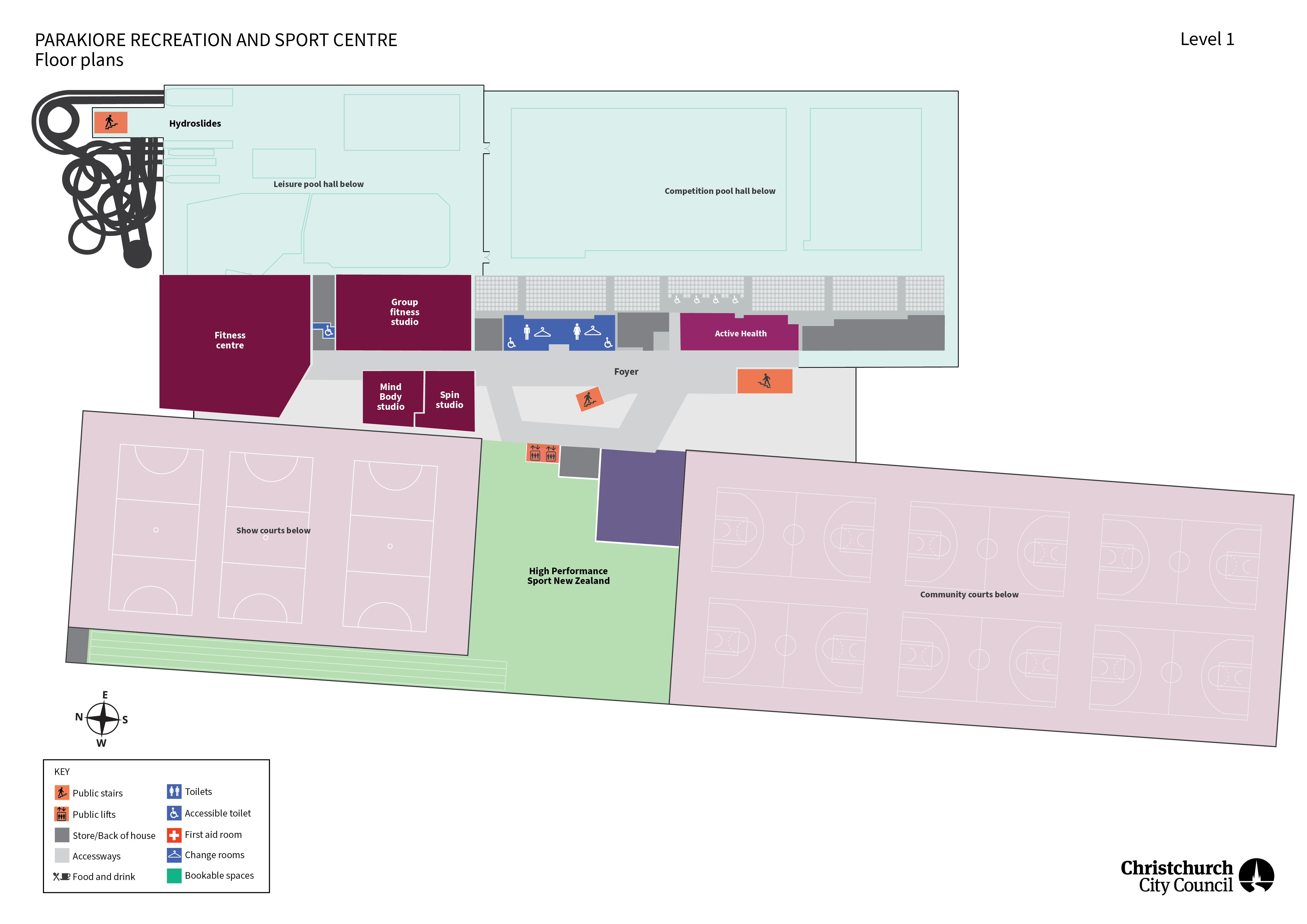 If you struggle with the busy nature of Parakiore, you are welcome to use the Moorhouse Avenue entrance and use the Reset Space to the left of the entrance. This low-arousal entry point allows customers to reset and / or alert Customer Experience at reception or the Sensory Aqua Centre staff of their arrival either by phone or by pre-arrangement. You can then be supported through the building either by staff through staff access points or unsupported once you have had an opportunity to reset and continue. This may be useful for customers wishing to use the Sensory Aqua Centre.